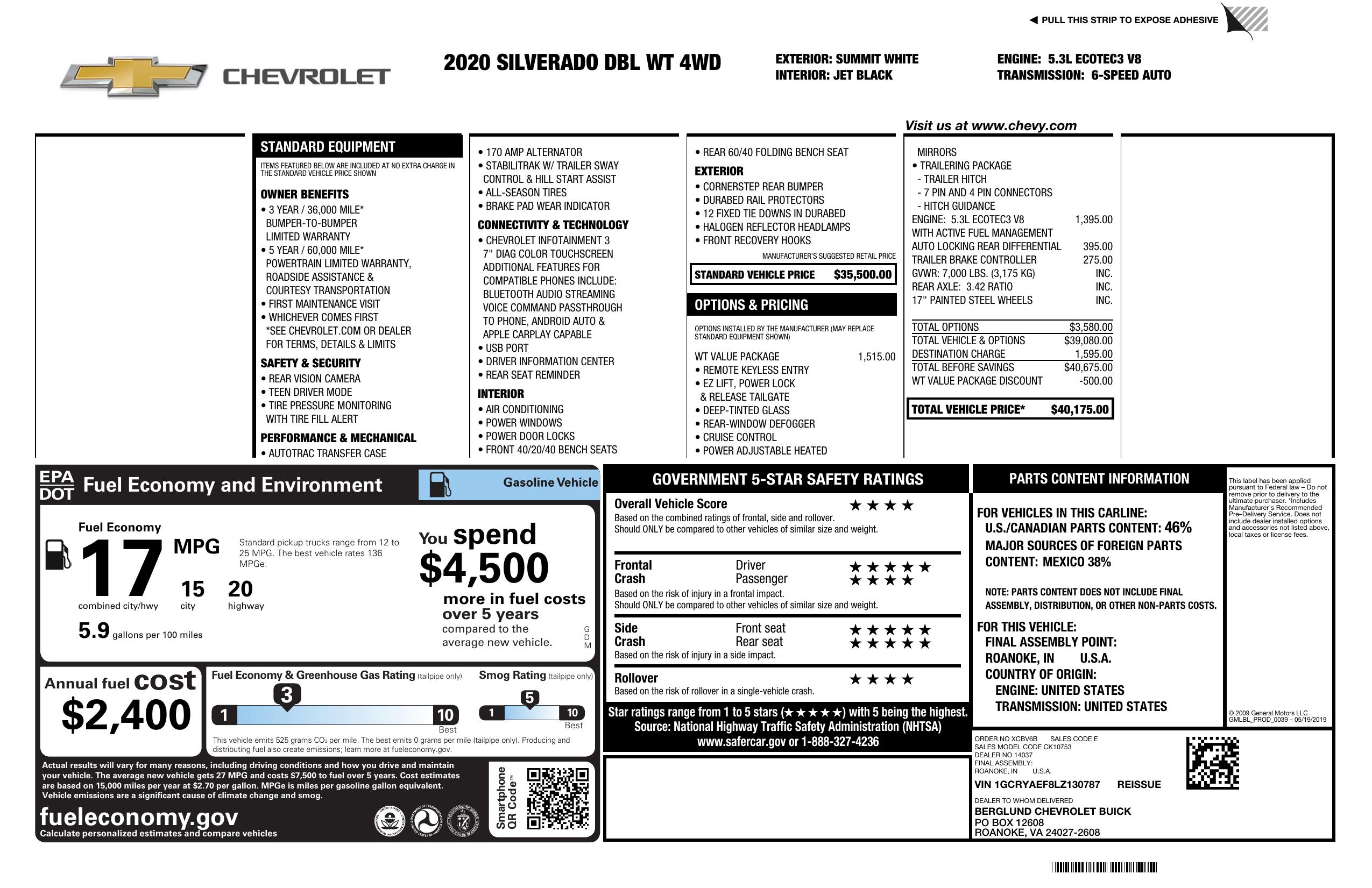 - (PCV) WT Convenience Package and (Z82) Trailering Package